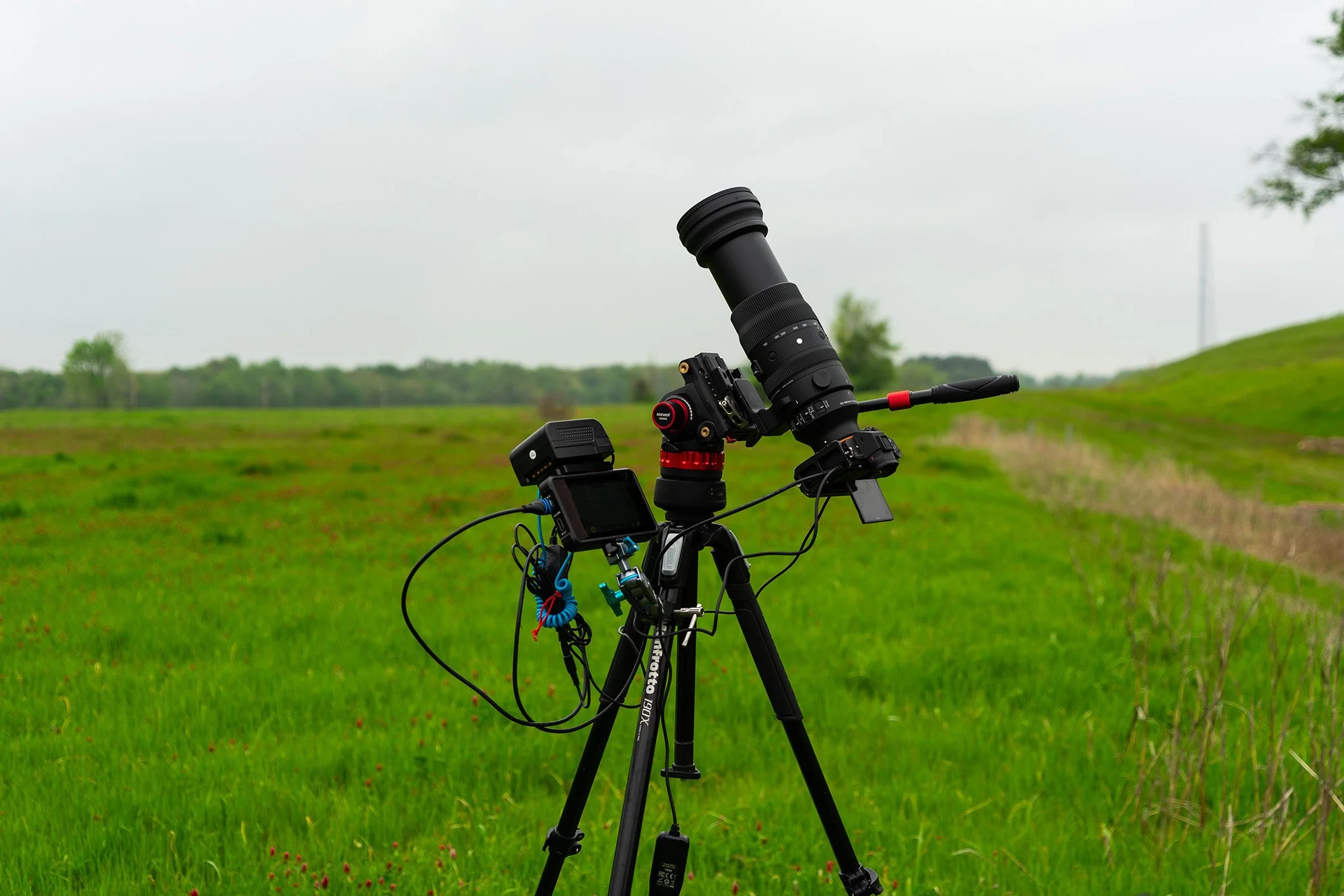 In the time before totality, I set up my camera and tried to verify everything was working properly. Aside from using a longer lens this time around, I also connected an external monitor so that I could check my focus easier compared to looking at the small screen on the back of my camera. Additionally, I used a large V-Mount battery to power both the camera and monitor so that they would last without running out. I had a small hiccup where I could not find the screw used to connect my battery plate to my monitor. Ultimately, my brother suggested I just take a screw off another part where I had used two screws and just use one screw in both locations. After connecting all the cables, there was not much to practice before totality since I could not see the sun to set my focus or zoom on my lens.